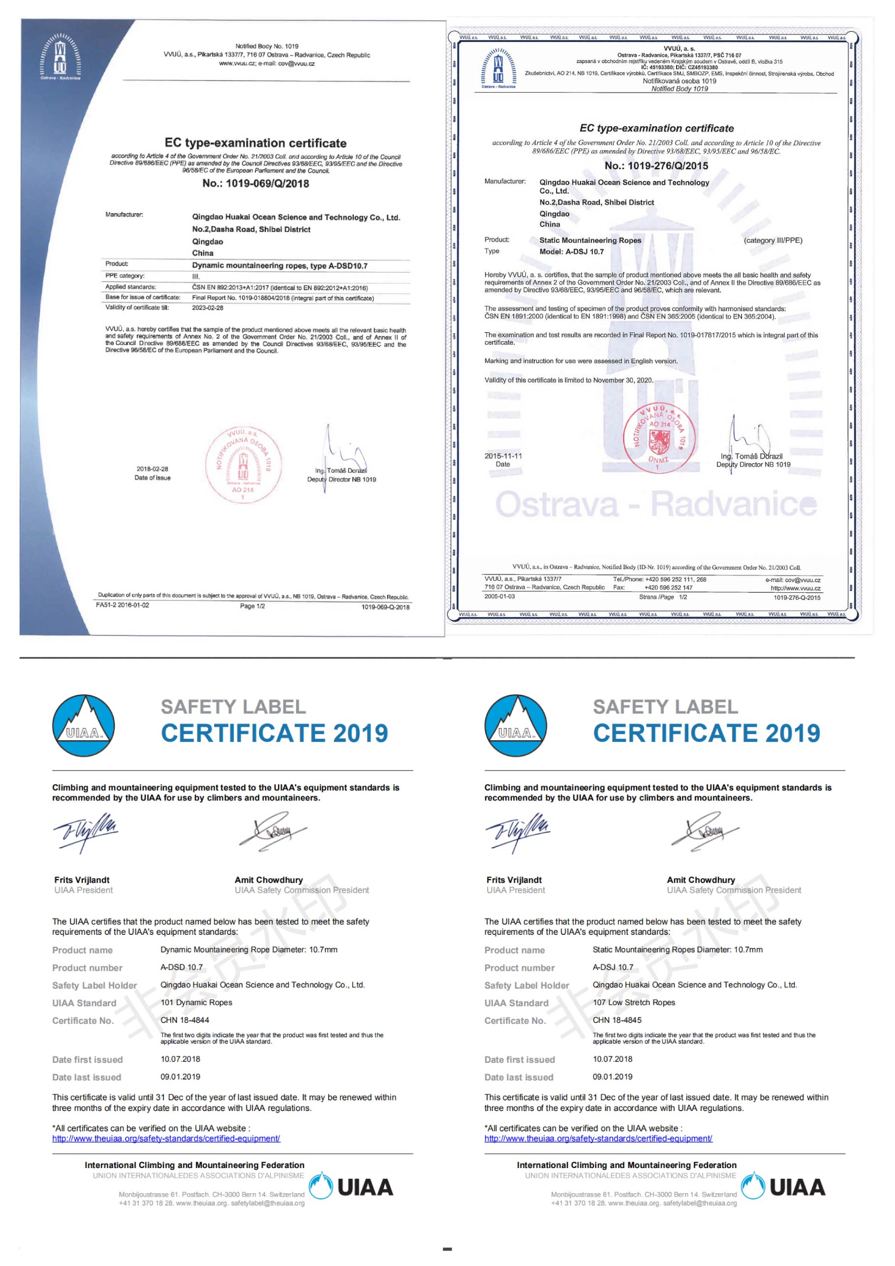 公司研發(fā)的“蛟龍”動力繩、靜力繩為全國首家通過CE、UIAA雙認(rèn)證。
