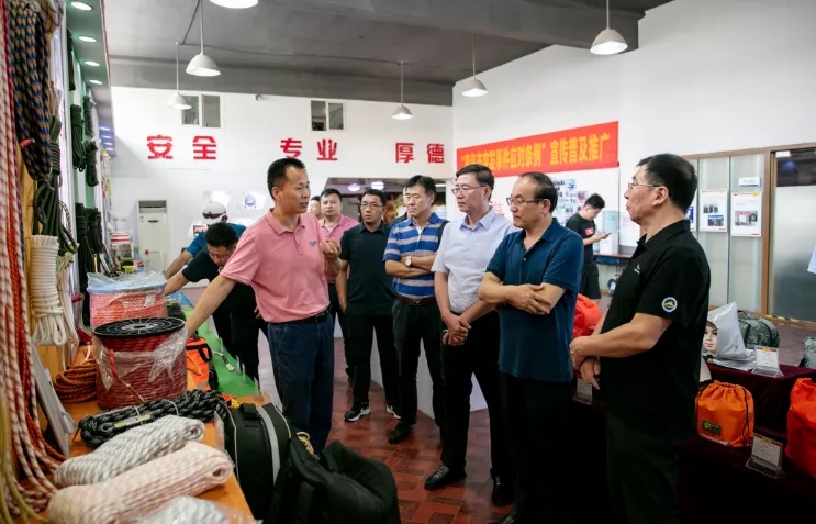 集團董事長張旭明向李致新一行介紹了集團的發(fā)展歷程、產品的創(chuàng)新升級等情況,并就集團應急安全培訓和特種繩纜研發(fā)和推廣使用等方面所做的工作進行了匯報。