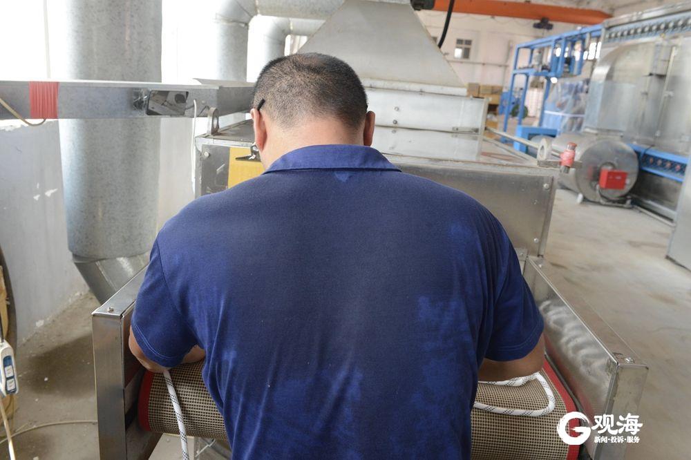 記者在熱浪襲人的生產(chǎn)車(chē)間見(jiàn)到周光耀時(shí),他正在50多度高溫的爐前將成型繩索整理送進(jìn)爐膛高溫處理。