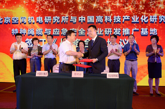 論壇上,還宣布了海麗雅集團與清華大學(xué)科技研發(fā)中心共同研發(fā)的中國第三代高層樓宇緩降器試制成功,同時中國航天科技集團中國空間技術(shù)研究院508所與基地簽訂《戰(zhàn)略合作協(xié)議》。