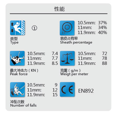 訓(xùn)練動力繩良好的彈性為沖墜者提供更好地保護,性能指標(biāo)符合歐盟標(biāo)準(zhǔn)EN 892。