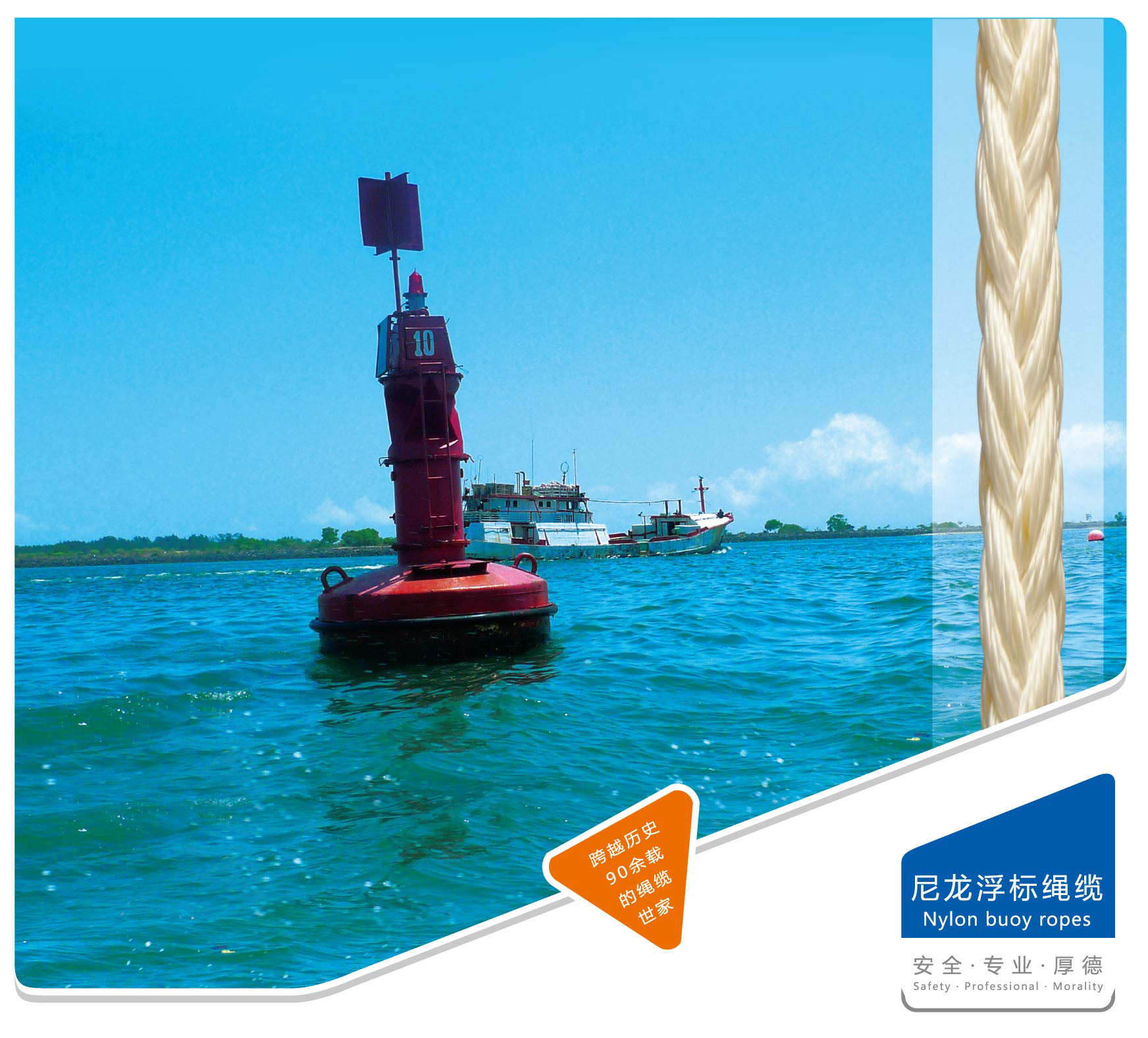 Φ15mm-60mm浮標繩纜,優(yōu)質(zhì)高強尼龍(PA)材質(zhì),經(jīng)過特殊后整理工藝,斷裂強力50KN-600KN,延伸率20%-40%,八股、十二股不同結構供選擇,滿足各類深海浮標系統(tǒng)、深海勘測裝備要求。
